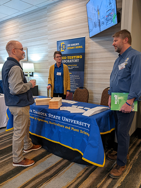 Wealth advisors Tyler Hirth and Jack Garrison of Strategic Wealth Group.Kevin Schulz, editor of The Farmer magazine, chats with Kathy Mathiason and Brent Turnipseed, assistant manager and manager, respectively, of the SDSU Seed Testing Lab.Tommy Saatzer, Business Development Manager, Profile Industries.Craig Tomera, Identity Preserved Crop Specialist, Certified Crop Advisor, and Sustainability Specialist for Grain Millers.Gabe Loraas, Regional Sales Manager—Midwest, with AMVT.Amanda Sommers, Program Coordinator for Minnesota FFA Foundation.